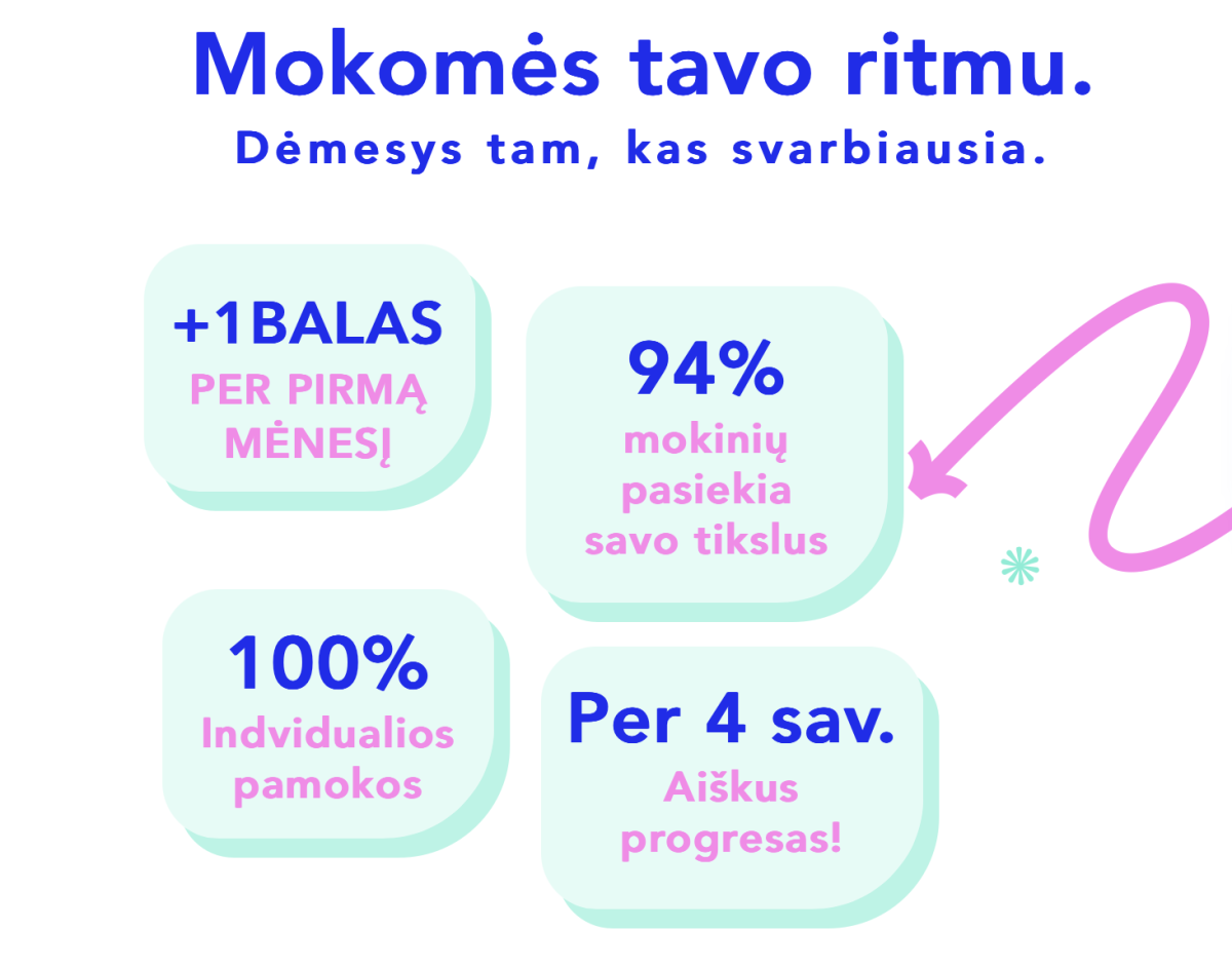 94% mūsų mokinių pasiekia savo tikslus. Prisijunkite prie jų jau šiandien!