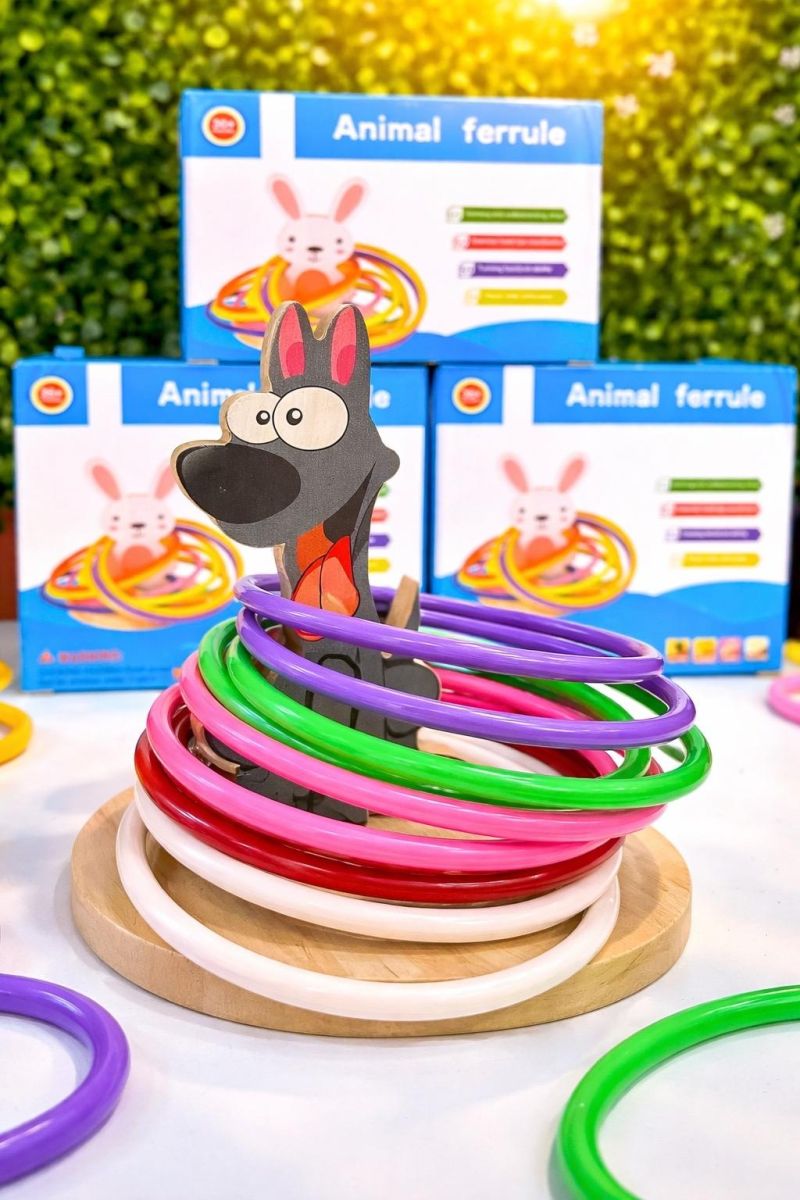 Spalvingas ir smagus medinis žiedų mėtymo žaidimas su linksmu šuniuku – puiki pramoga vaikams, kuri ne tik džiugina, bet ir lavina svarbius įgūdžius. Ryškūs plastikiniai žiedai ir tvirta medinė konstrukcija užtikrina saugų bei ilgalaikį naudojimą.