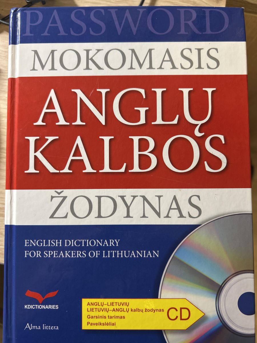 Parduodamas Mokomasis anglų kalbos žodynas su garsinio tarimo CD disku. Leidimas 2012 metų Alma litera.